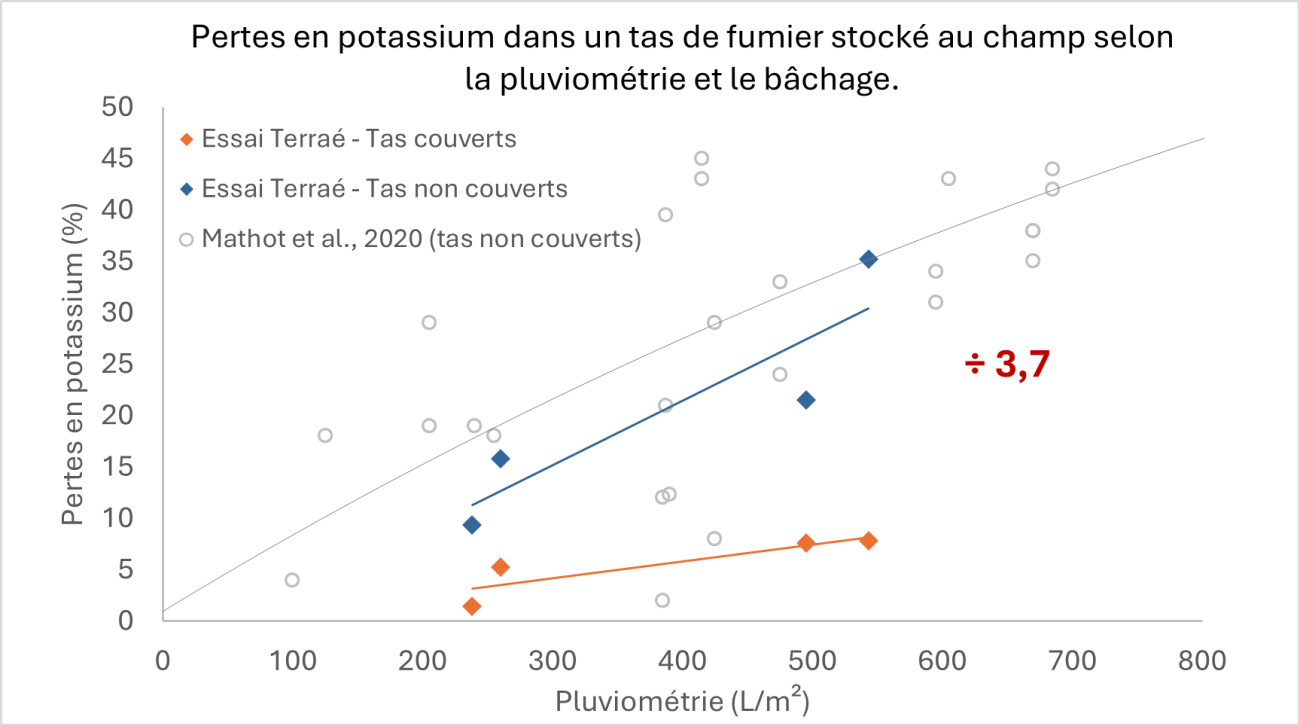 - Plus le tas est lessivé par la pluie, plus les pertes en K sont importantes