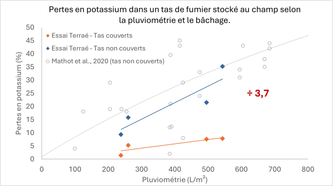 Le bâchage des tas de fumier a permis de diviser les pertes en potassium (K) par 3,7