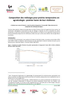 Ce document tente de répondre aux nombreuses interrogations concernaient le type de mélange à implanter lors de la rénovation de prairies temporaires en se basant sur les expériences acquises par le Centre de Michamps ainsi que sur des essais réalisés chez les agriculteurs.