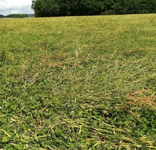 - L’année 2024 était anormalement pluvieuse, boostant le trèfle et couchant la céréale à Un meilleur choix des deux variétés contribuerait à réduire le risque.