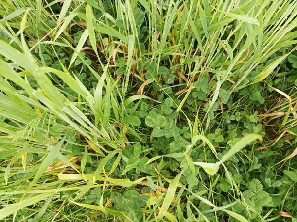 - Le trèfle blanc était d’une variété à potentiel de développement trop important, et accentuait fortement le risque de verse à Choisir impérativement une variété naine ;