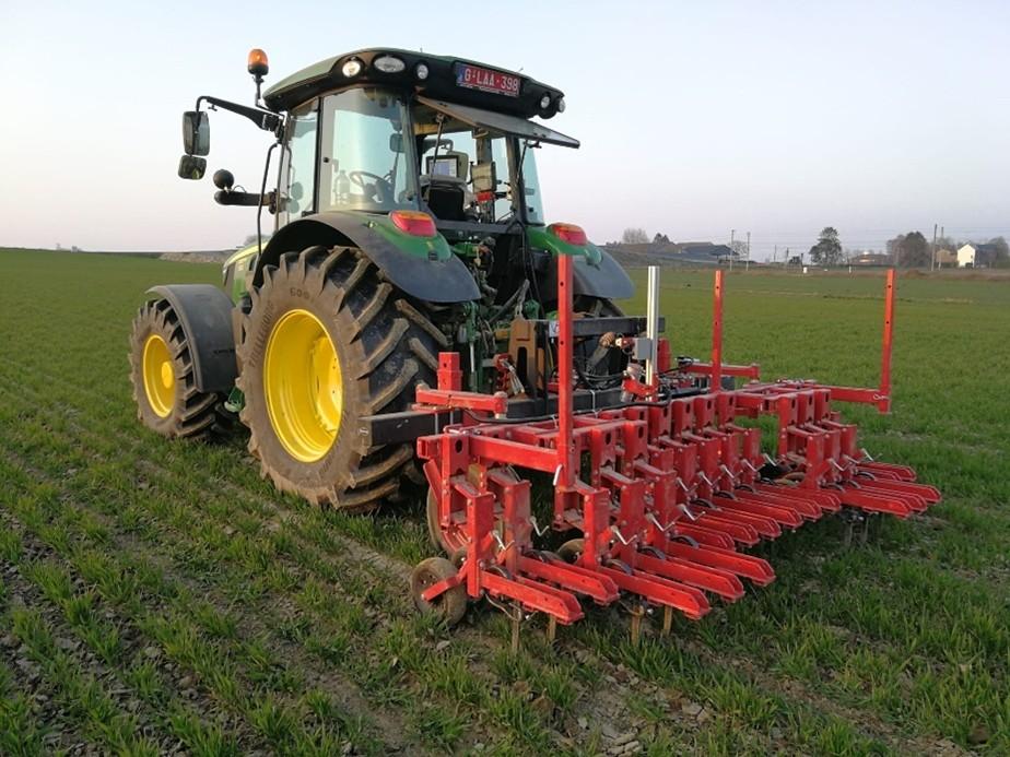 Les adventices levées sont gérées par un premier binage, dès que le sol est ressuyé au printemps. Guillaume utilise une bineuse équipée d’une caméra, qui positionne les dents précisément entre les rangs. Si les conditions le permettent, un second passage avec une herse étrille est réalisé. Enfin, pour éviter que les adventices restantes ne montent en graine et ne se reproduisent, un écimage manuel est effectué en juin.