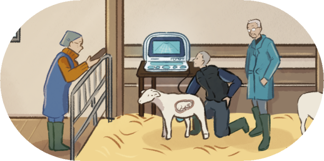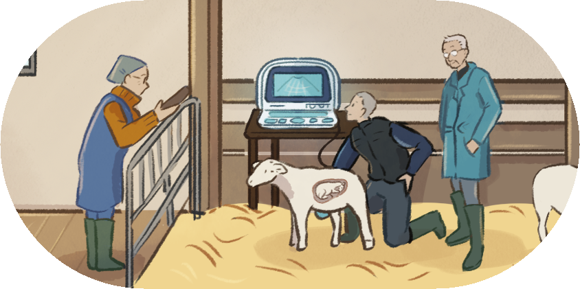Lors des échographies, Olivier ne cherche pas à tout savoir, à tout contrôler. Il utilise un ancien échographe non portable recyclé du cabinet vétérinaire pour vérifier si chaque brebis est pleine ou vide. Bien qu’il puisse essayer de deviner le nombre d’agneaux, cela lui importe peu, le principal étant de savoir si la brebis est gestante ou non. Il explique connaître son appareil : Avec l’expérience, on connait son appareil et ses images, et puis on sait ce qu’on doit voir pour confirmer la gestation. Olivier et son papa expliquent aussi s’attacher à ce vieux matériel, qui leur rappelle des souvenirs.