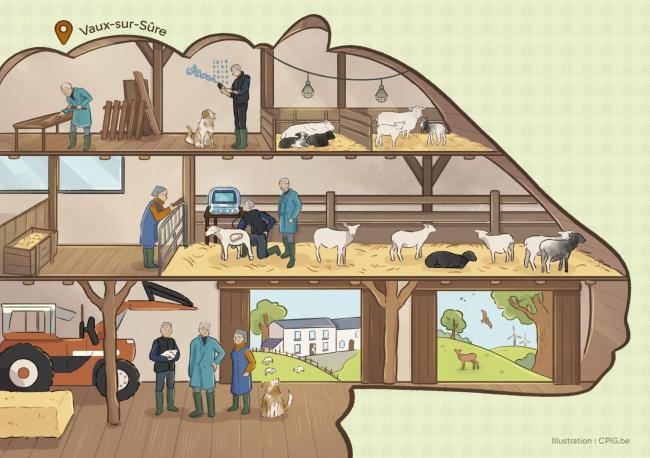 A Vaux-sur-sûre, Olivier construit "sa petite aventure" comme il le dit souvent, entouré de ses moutons et de ses parents. Cette activité trouve sa place en complément de son métier de vétérinaire. La longue allée amenant à la bergerie nous plonge au cœur de la passion d’Olivier pour ses moutons et nous laisse déjà deviner son attrait pour la biodiversité.